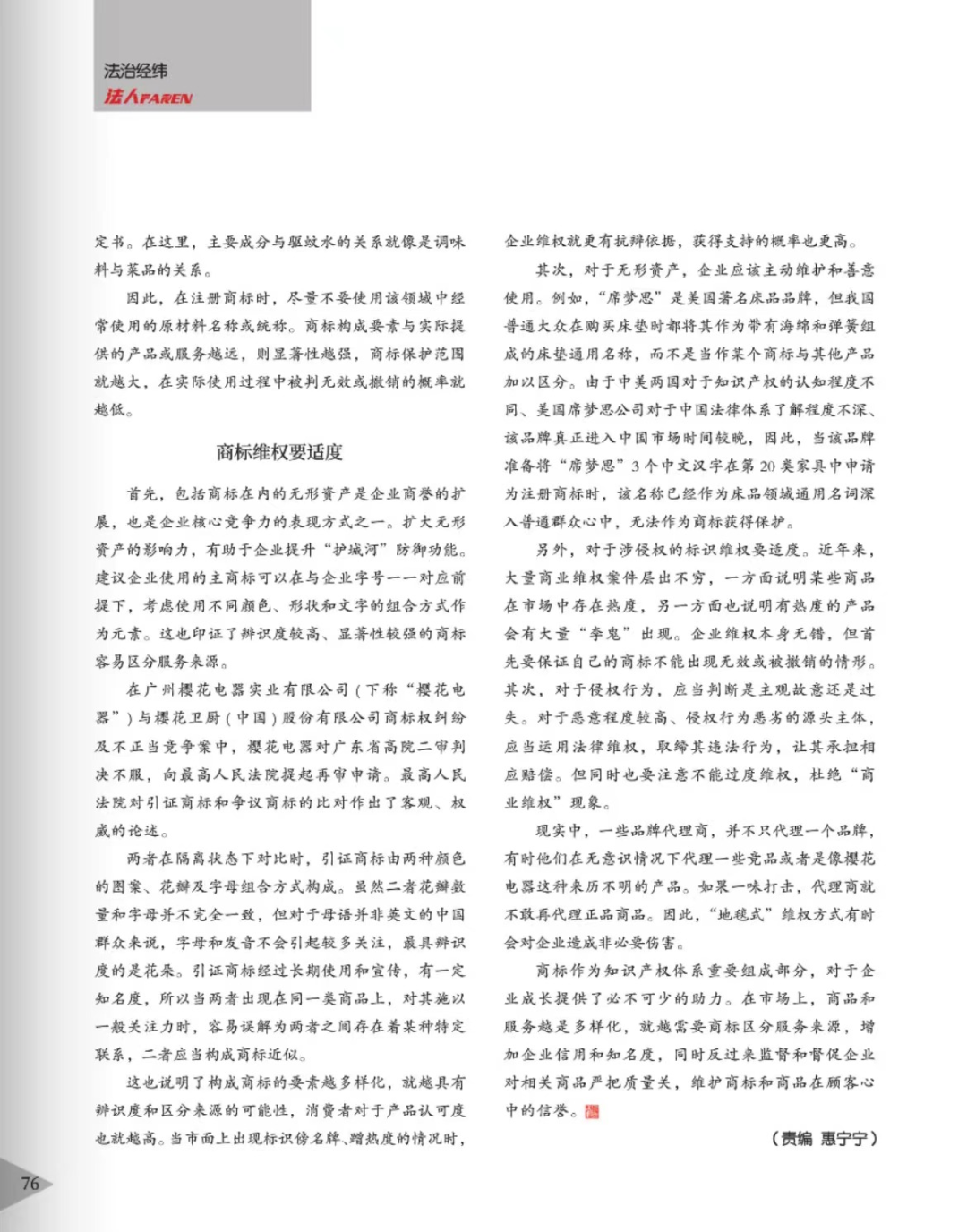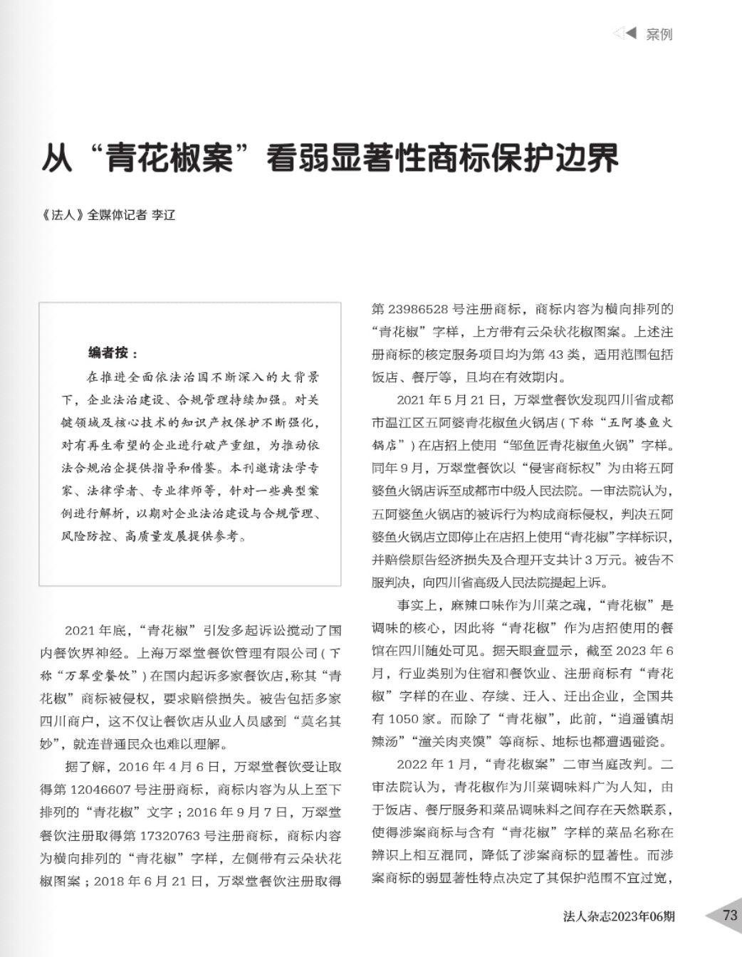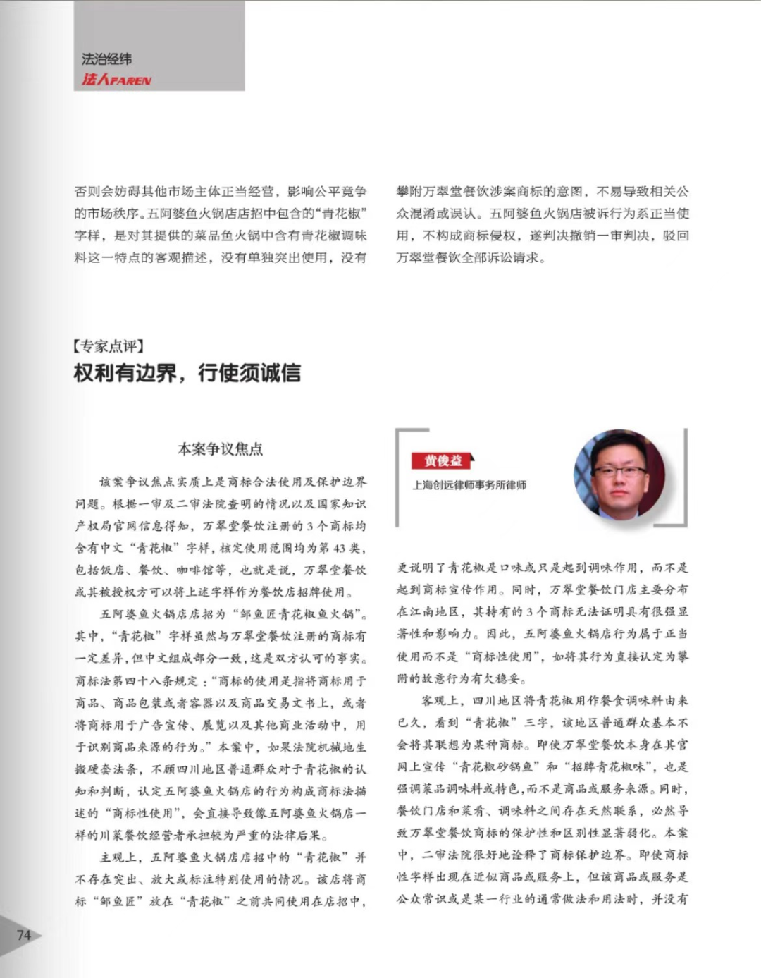 宁波辉知简讯 | 辉知队黄俊益律师应“法治日报”旗下杂志邀请,就“青花椒”案发表专家点评