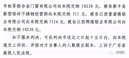 宁波凤铝系列维权案:诉辉煌公司等四被告,法院判赔250余万