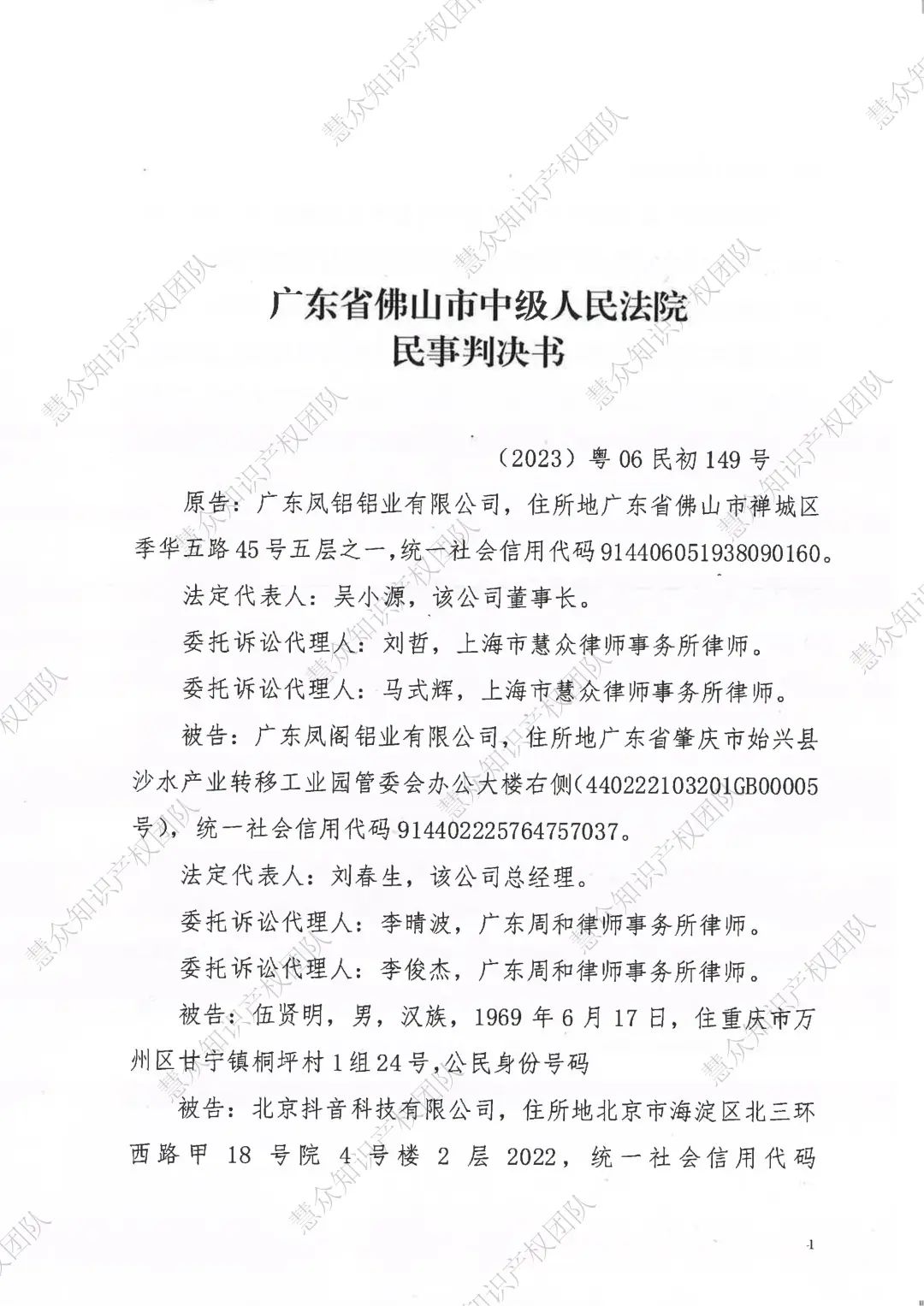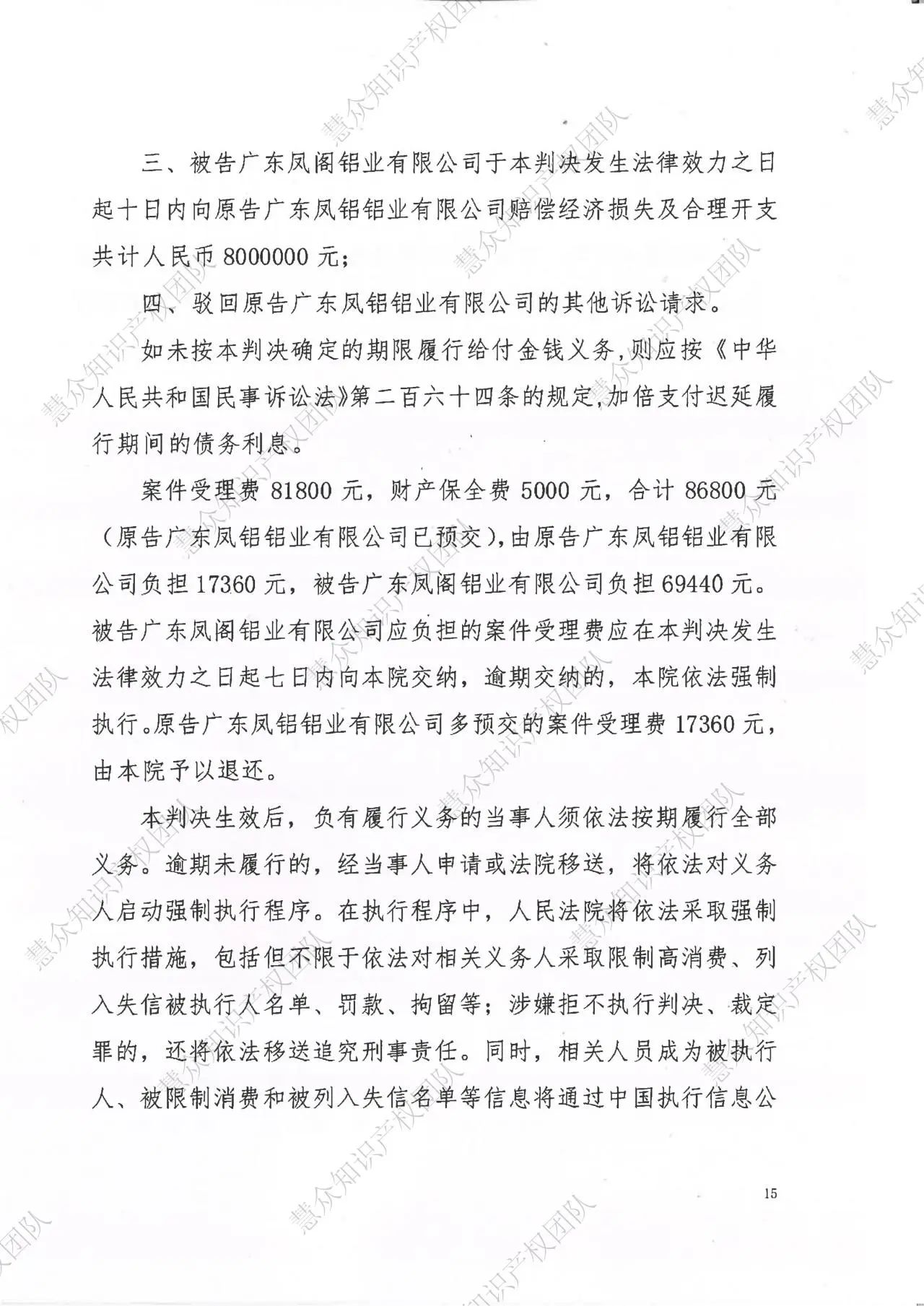 宁波判赔800万!辉知队代理“凤铝”商标维权案胜诉